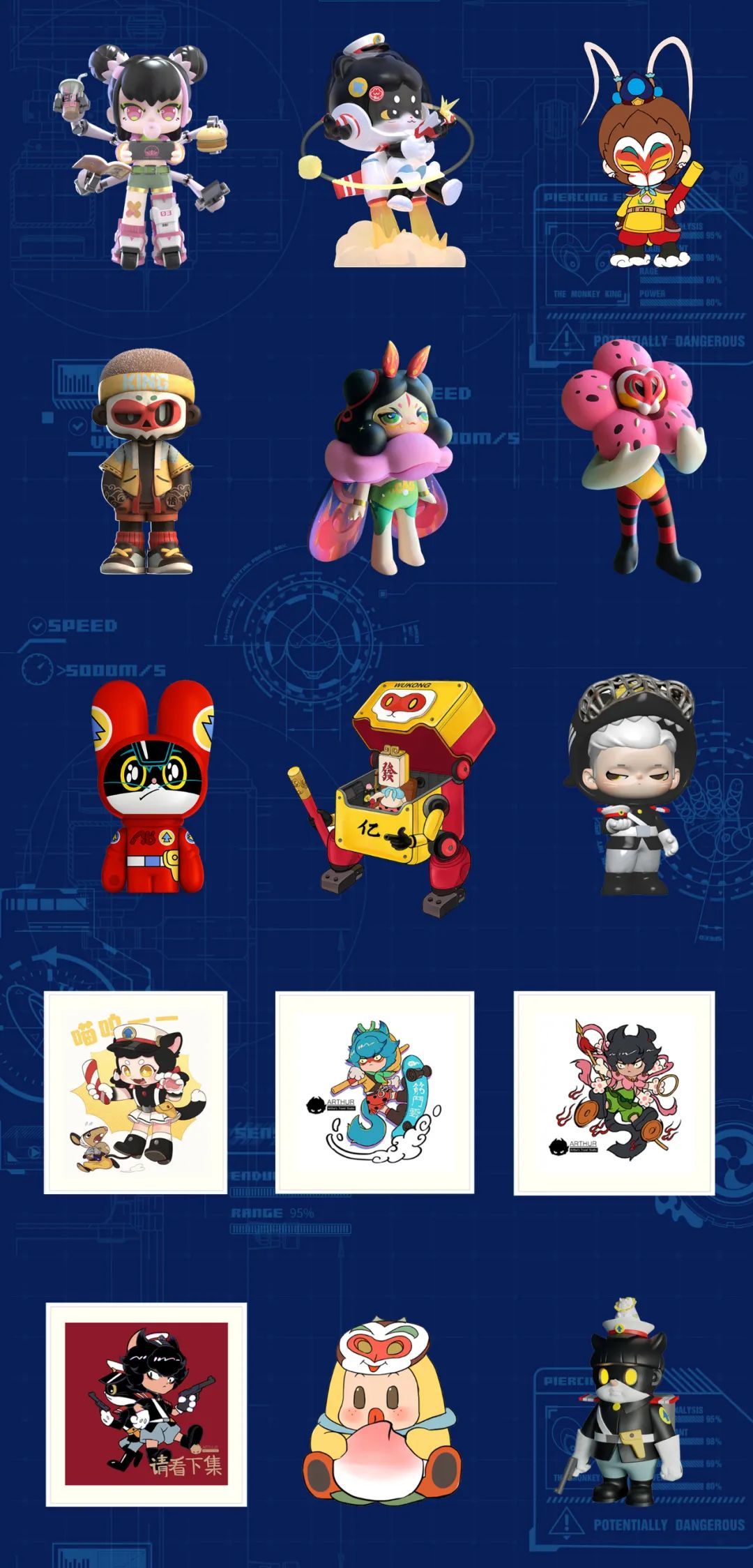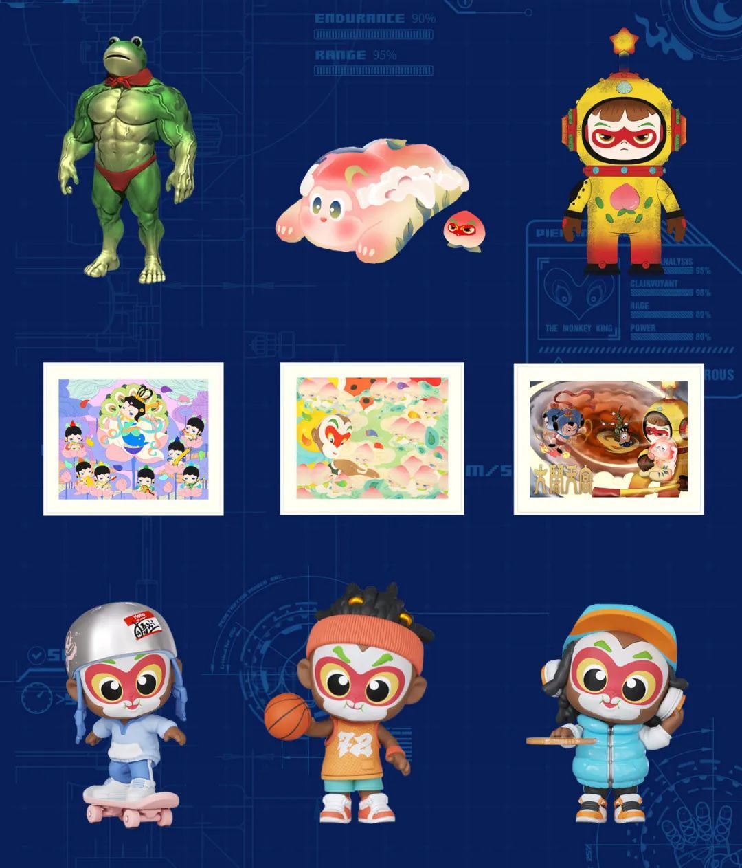 上影的经典动画IP深入人心。此前,上影元为腾讯2023QTX现场参展的企业免费开放了《大闹天宫》《葫芦兄弟》《黑猫警长》《哪吒闹海》相关图库,邀请众多潮玩品牌及设计师加入共创设计,经过一个月的筹备,目前已收集到近百件潮流玩具设计品。