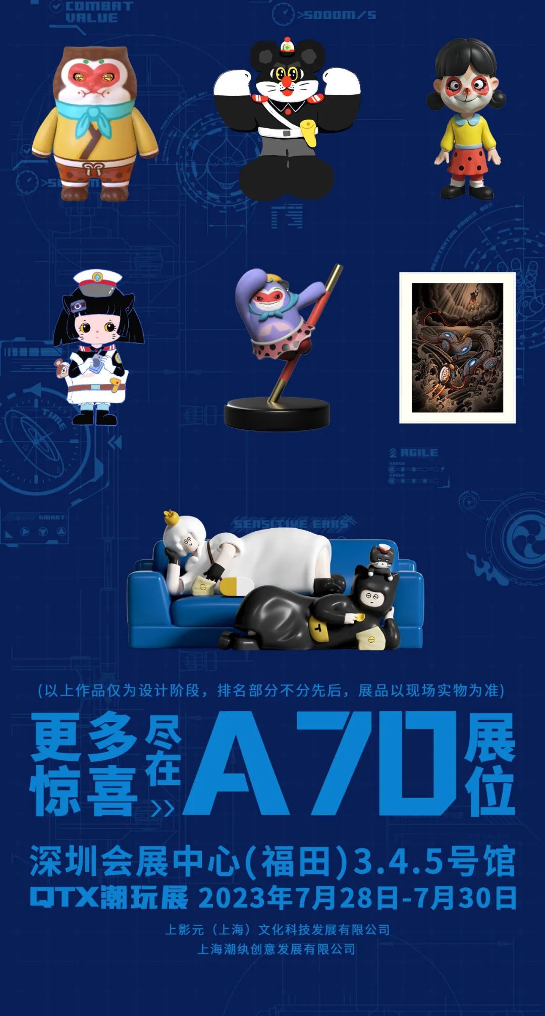 7月28日-30日,潮玩界的潮流盛会——QTX潮玩展将在深圳举行。上影集团子公司上影元(上海)文化科技发展有限公司(以下简称“上影元”)携手南翔本土企业上海祺镁文化发展有限公司(以下简称“祺镁文化”),上海潮纨创意发展有限公司(以下简称“潮纨创意”)推出近百件潮流玩具参展。
