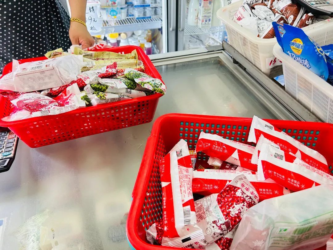 不止牛奶便宜,这里的雪糕也是低于市场价。盐水棒冰1.2元一支、玉米香1.6元一支、娃娃雪糕2元一支……周女士买了满满一大袋冷饮,结算时发现才86元,直呼“太划算了。”