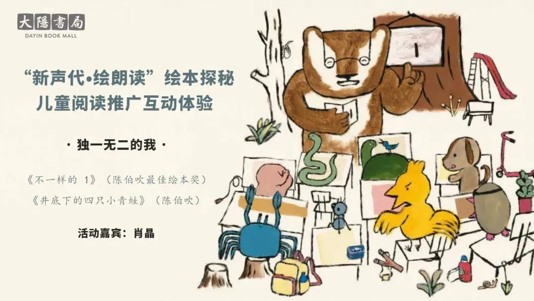 7月30日,大隐精舍特别邀请资深阅读推广人肖晶老师,带小朋友们一起来认识这本陈伯吹国际儿童文学奖推荐榜单作品,《不一样的1》,还有陈伯吹知名作品《井底下的四只小青蛙》。去绘本里发现与众不同的你我,原来你也是那个最特别的“1”!
