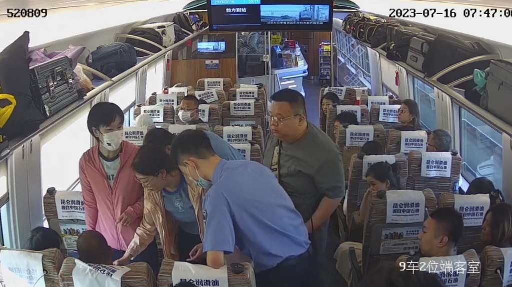 7月16日早上7点40分左右,在G1次列车上,一位男性旅客急匆匆地向列车员求助,称4岁的孩子突然发烧,出现呕吐、大小便失禁的情况,列车长薛峰随即赶到现场。在开展广播寻医后,两位医生先后赶到车厢查看孩子情况。医生表示孩子情况危险,需要立即送医救治。