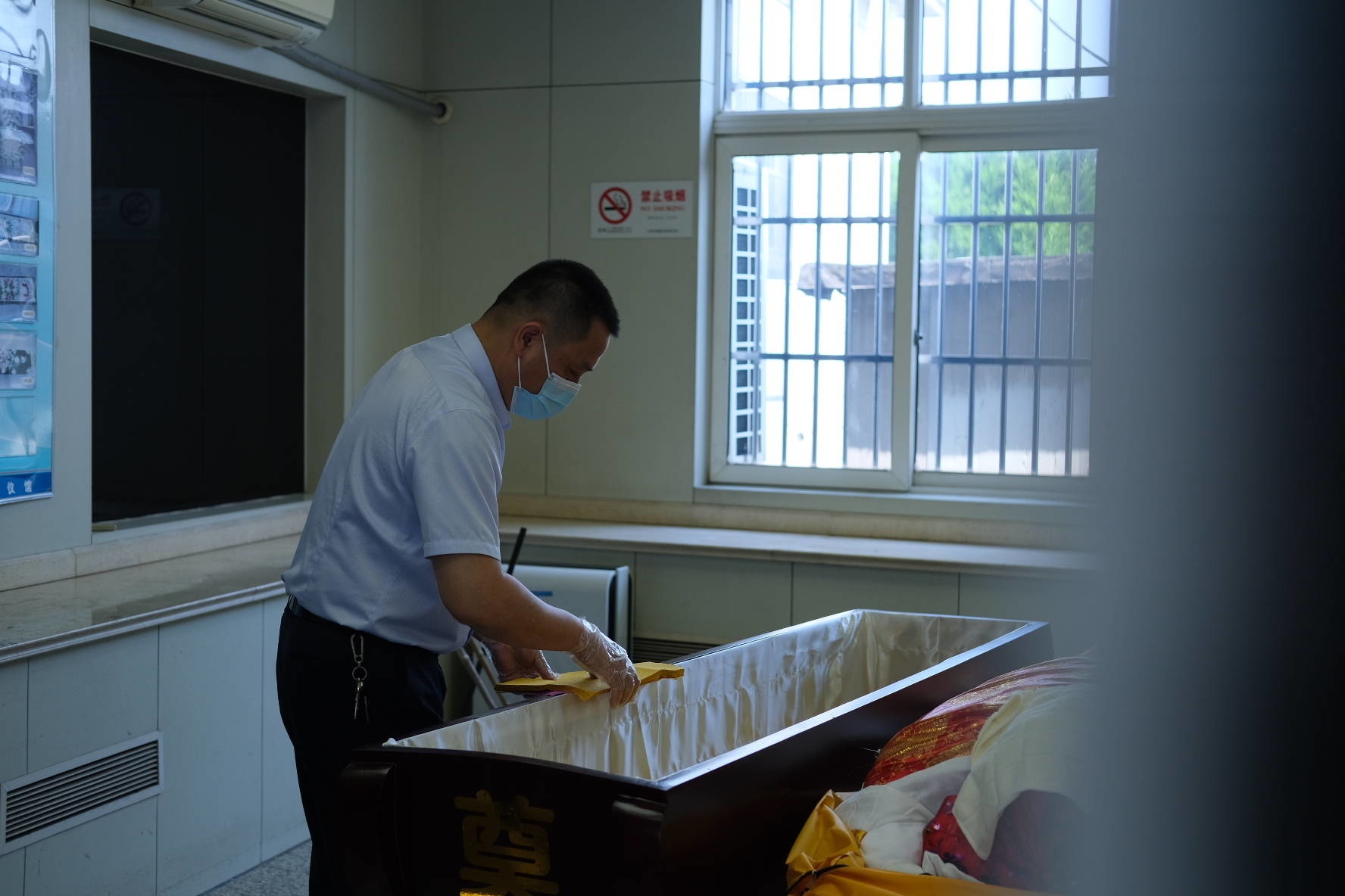 我是金山本地人,退伍回来就想找份工作。一开始也有点歧视这个岗位,但是没工作,就硬着头皮也要来应聘了。招聘的时候,一起入职的有8个人,心里想着不会分到殡殓部,结果真的分到了最恐怖的部门。第一次来这里的时候,就看到一个车祸去世的人,子女都围在旁边哭,我就也跟着流眼泪,毕竟生命可贵,忍不住就共情落泪了。