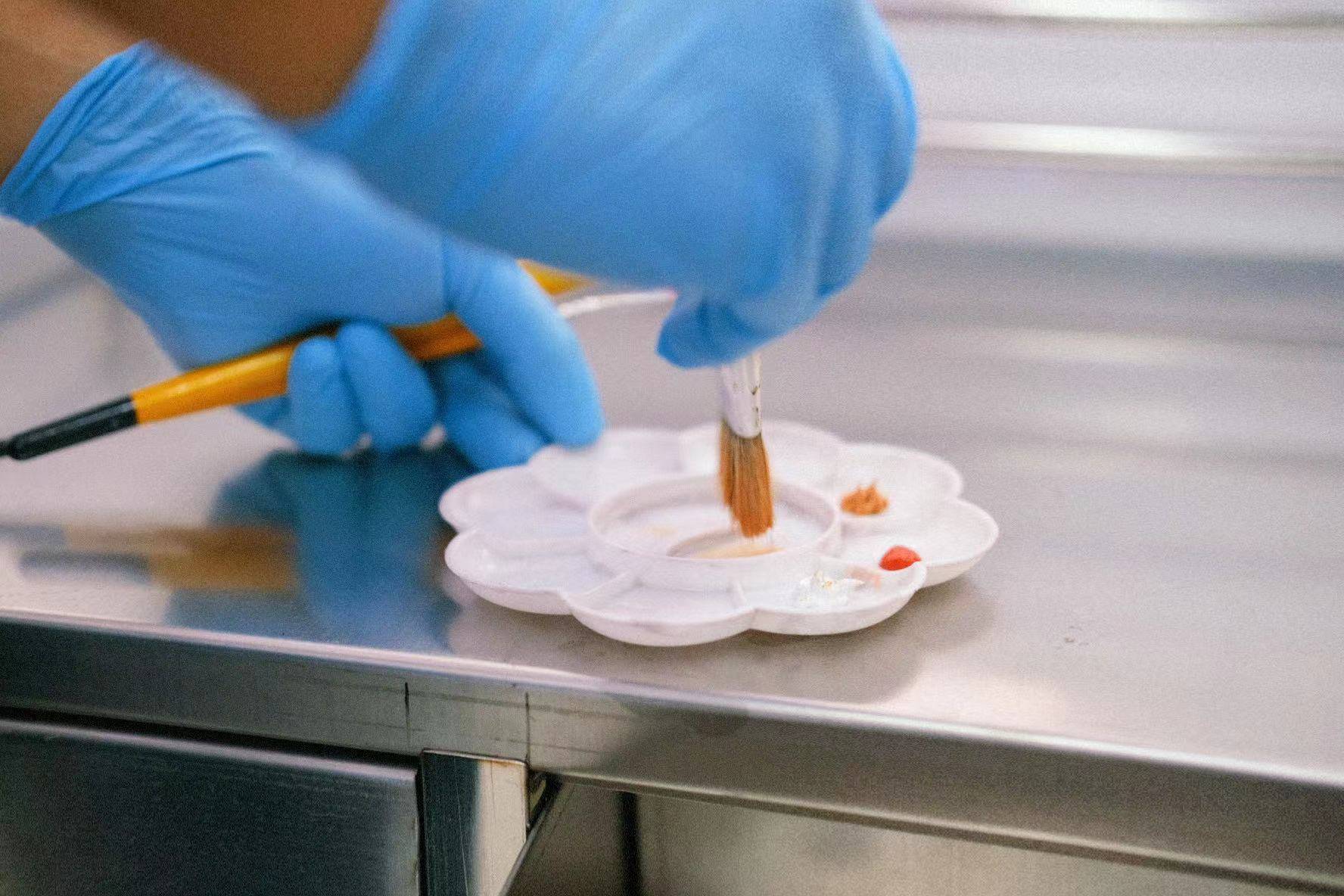 油彩、画笔、调色盘...这看起来更像是美术生使用的画材,而不是大众常用的化妆品。钱红连告诉我,大家的脸都是有温度的,平常的化妆品更好附着在脸上,但是遗体没有温度,而且从冷库出来的遗体,大多会析出一些水分,油彩的上色性和防水性更加好,也更适合为遗体上妆。“他们没有温度了,但我们想做有温度的事情,让他们更有尊严、更体面的离去。”钱红连说。