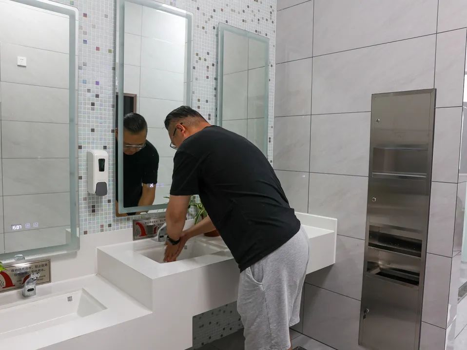 公厕从常规的“推拉门”转变为电动感应门,内部环境舒适整洁,空调、绿植与音乐的配合更是透着清凉的气息。内部采用自动感应冲洗系统,配备梳妆镜和成人、幼儿洗手池,还配置了第三卫生间同时满足残障人士及老、弱、病、妇、幼等特殊人群的如厕需求。