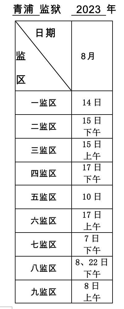 2、部分会见日可能有所调整,请关注上海市监狱管理局门户网站及“上海监狱”微信公众号。