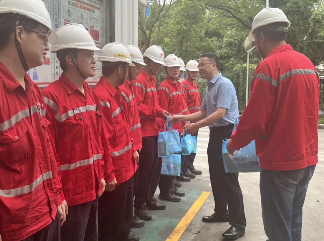 7月20日下午,工业区人大工委主任沈峰来到上海开利运输冷气设备有限公司,将防暑用品送至一线职工手中,向他们的辛勤工作致以谢意和问候,并叮嘱职工们注意防暑降温、劳逸结合,同时希望企业加强高温天气职工的劳动保护和后勤保障工作,确保平安度夏。