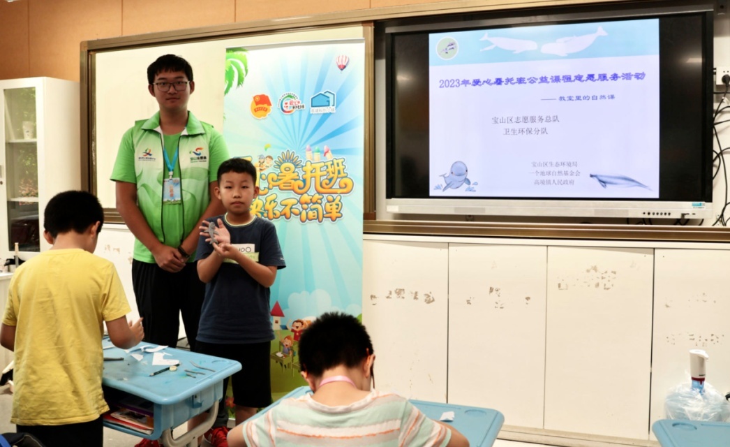 近日,宝山区生态环境局卫生环保志愿服务实践队与一个地球自然基金会在上海市教育学会宝山实验学校开展了以“教室里的自然课”为主题的公益课程第二期,此次活动主题为“江豚”。