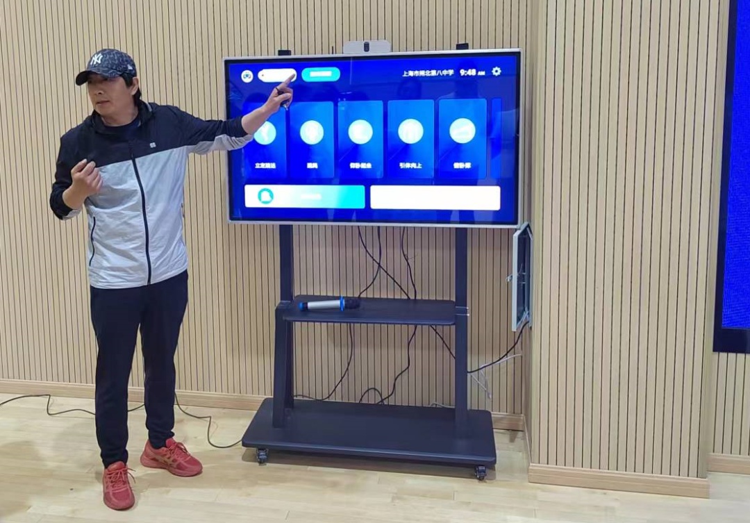2021年,8台电子屏进驻闸北八中室内体育馆,成为学生体育“云锻炼”的“新伙伴”。跳绳、深蹲、俯卧撑……电子屏上显示各项运动数据,学生登录即可挑战擂主,全年级的排名即时产生。