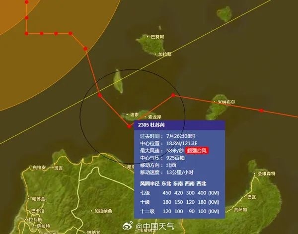 “直角”路径究竟是如何形成的?中国天气网气象分析师张娟表示,26日早上,“杜苏芮”受到菲律宾北部高山地形摩擦等作用影响,路径趋向了西南侧,随后又在副热带高压引导下逐渐往西北转向,因此在路径上出现了近乎直角的呈现。