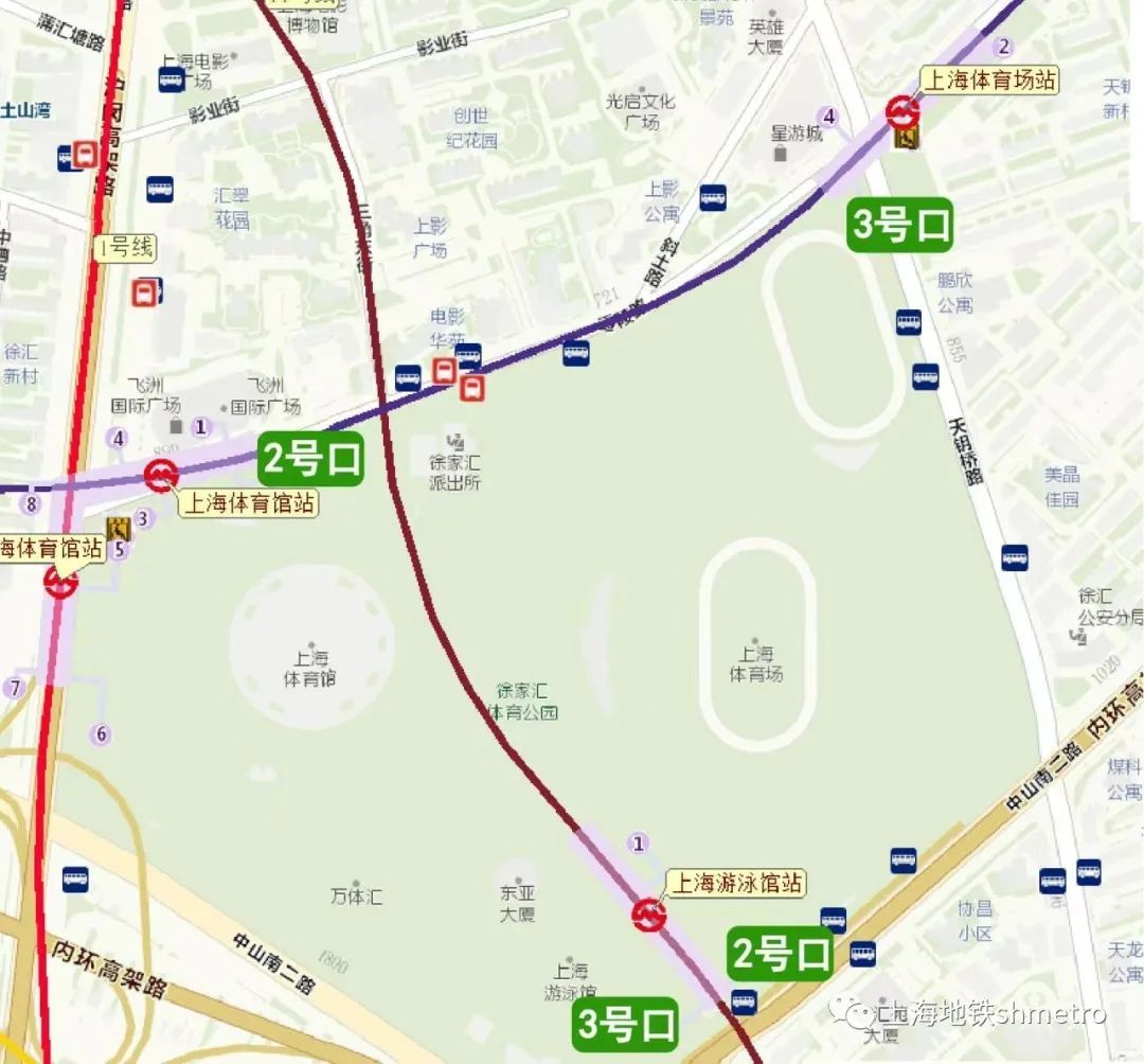 需要到上海体育场站乘坐四号线的乘客请走3号口,距离最近。