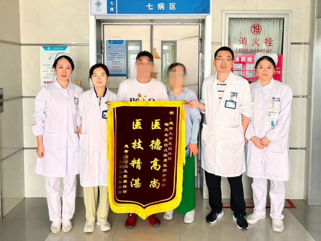 在外科病区护理团队密切配合和精心护理下,马先生术后恢复迅速。出院时患者和家属为医护团队送上了锦旗。“记得开刀前说话都还没那么利索,手术后这么快康复,太感谢你们了!”马先生激动地说。