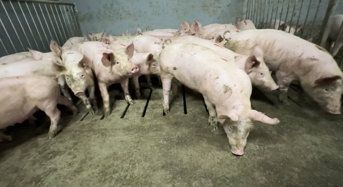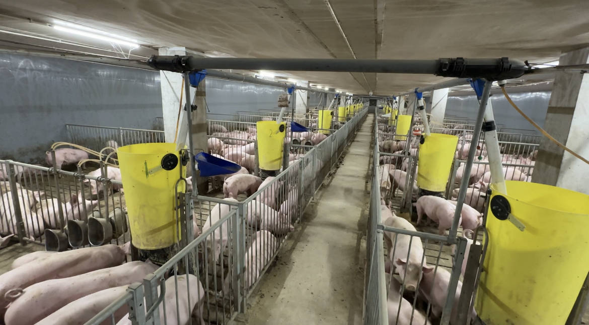 通过付洋洋的介绍,我知道,在这座猪场里,一共有1920间小猪舍。得益于楼房养猪高度集约化的优点,养猪场在不断向上生长延伸,占地面积更小了,但是实际空间更大了。每头猪的平均住房面积约1平米,这个住房标准,高过了欧洲规模养猪场 0.7平方米的标准。