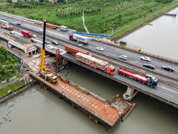 为缓解工程建设期间出入省和嘉定区出行交通压力,建设团队采用“占一还一”的施工期间交通组织方案,施工期间仍维持双向六车道的通行规模,交通组织异常复杂,翻交十分频繁,对施工质量工期、道路安全畅通带来了双重考验。