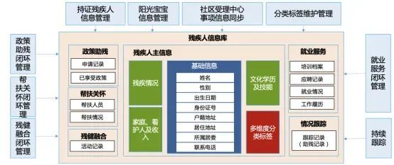 同时,该平台在人工日常维护的基础上与社区受理中心的一网通办3.0系统集成实现相关事项的信息采集,并可使用采集到的信息快速更新、补充残障人士信息库,以实现残疾人信息的快速、及时更新,提高数据完整度及精确性。