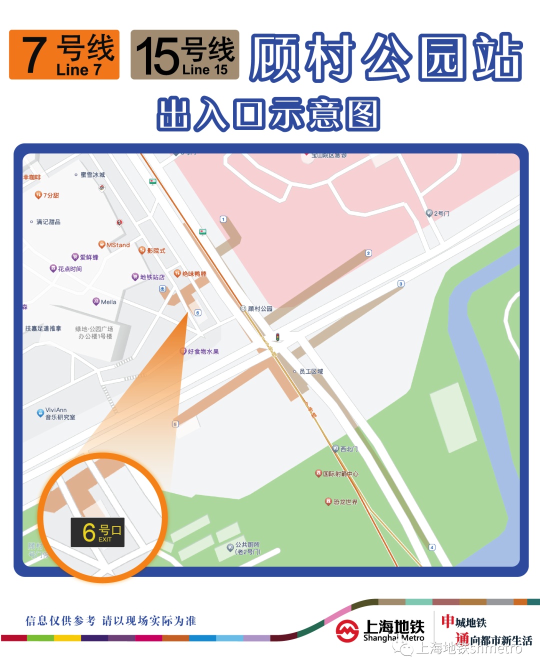 为配合加装自动扶梯施工,7号线顾村公园站6号口计划于2023年7月30日临时关闭。届时乘客可通过车站其他出入口进出车站。由此给您带来不便,敬请谅解!