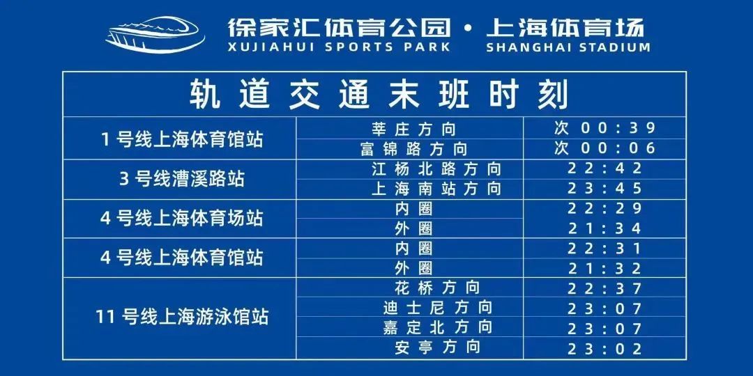 需要到上海体育场站乘坐四号线的乘客请走3号口,距离最近;乘坐1号线的乘客,请到上海体育馆站,走6号口;乘坐4号线的乘客,请到上海体育馆站,走2、4号口;如果要乘坐地铁11号线,请从上海体育场4号通道离场前往上海游泳馆站,可以根据具体客流情况选择车站的2号或3号口(两个出入口临近)届时车站将根据客流集中出行量,适时采取限流措施,请乘客根据现场指引有序通行至相应出入口。