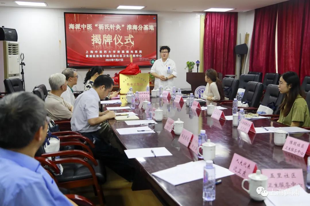 为更好践行以人民为中心的发展思想和全过程人民民主的重大理念,积极推进“奋进新征程、履职显担当”区人大代表主题活动,进一步挖掘代表资源、发挥代表作用,7月27日,“上海市非物质文化遗产 ”保护项目——海派中医‘杨氏针灸’”分基地传承工作站在淮海中路街道社区卫生服务中心揭牌成立。