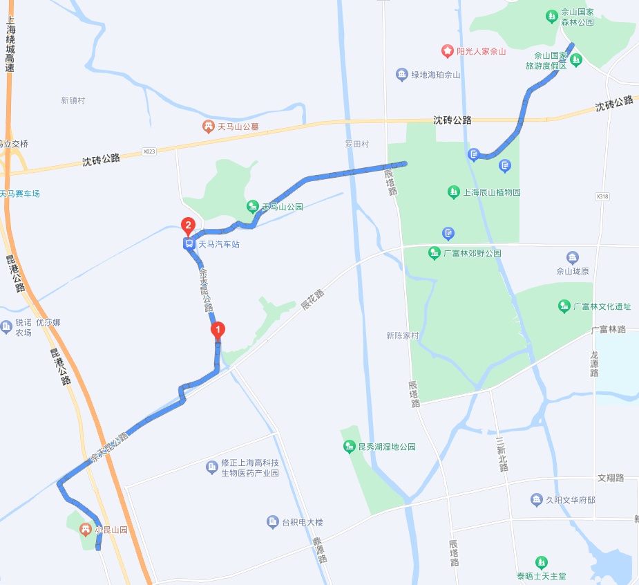 曾经的公共交通“沪佘昆线”,起点就在小昆山脚下,沿佘天昆公路北上,过天马山、佘山,一直到市区的西区汽车站,是松江西北一条重要的交通线路,承载了许多人的记忆。