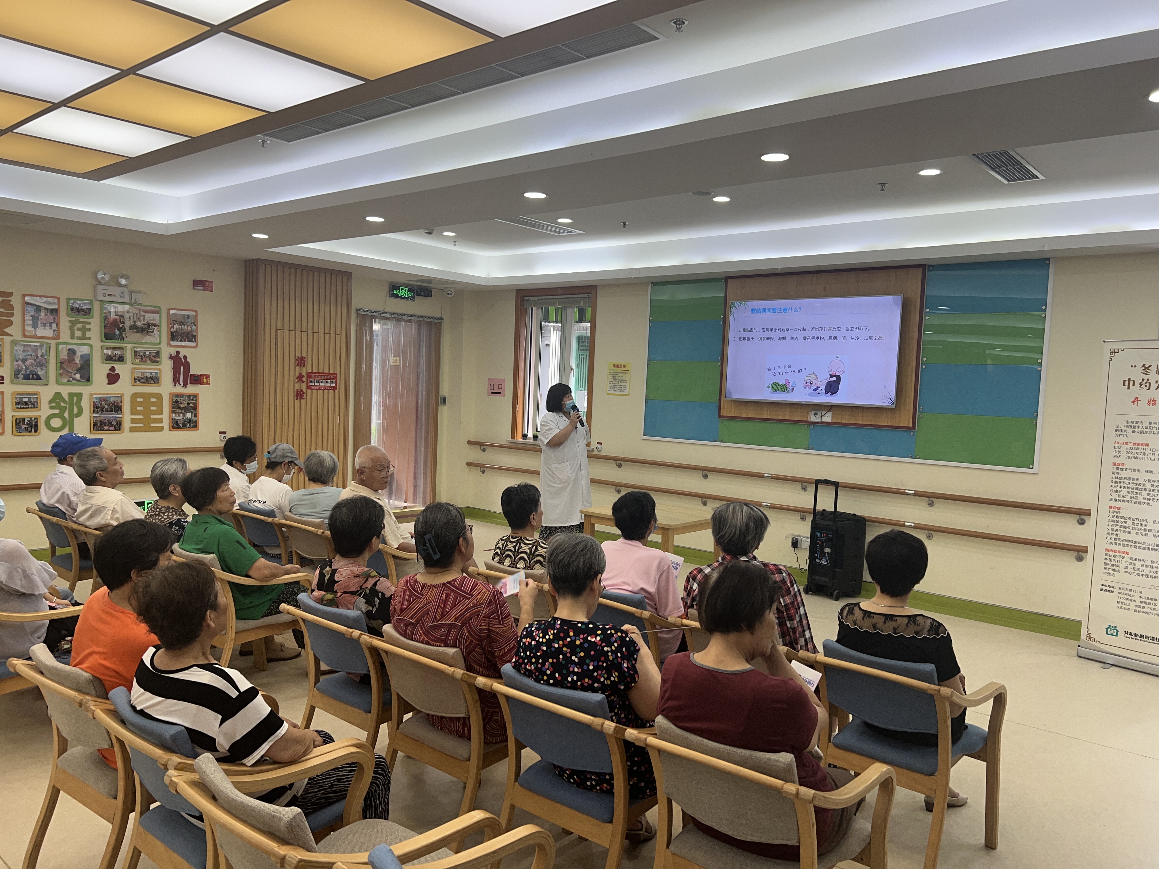 近年来,中医“治未病”“未病先防”的养生理念逐渐深入人心。正值“冬病夏治”的高峰时节,为更好地为老年居民普及中医“冬病夏治”的理念,来自共和新路街道社区卫生服务中心的医师们现场通过PPT展示、互动提问等方式为居民讲解什么是“三伏贴”、“三伏贴”适宜人群等内容。
