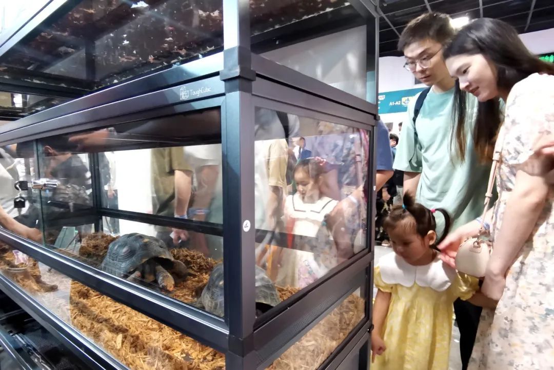 “我第一次见到这么大的乌龟,还有很小的守宫和各种颜色的蛇。”一位参展市民表示,交易会现场展出的爬宠种类非常丰富,身处其中就好像在逛“动物园”一样,既热闹有趣又能增长见识。