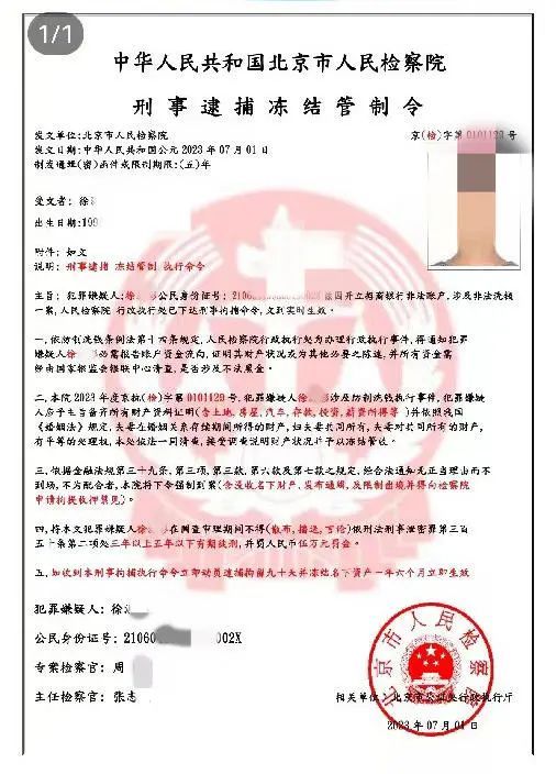 所谓的“北京市人民检察院刑事逮捕冻结管制令”