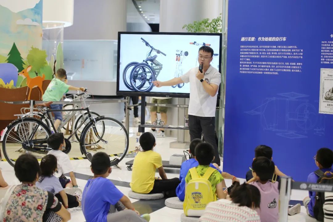 “自行车为什么越来越轻?”“异形自行车为什么没有被普及?”“路边的共享单车骑起来手为什么会被震疼?”现场气氛热烈,孩子们争先恐后地提出疑问。“我很喜欢自行车,今天我学习了自行车的结构和演化史的很多知识,原来世界上还有这么多奇奇怪怪的自行车,很有意思。”小车迷王棪铠迫不及待地分享今天的收获。