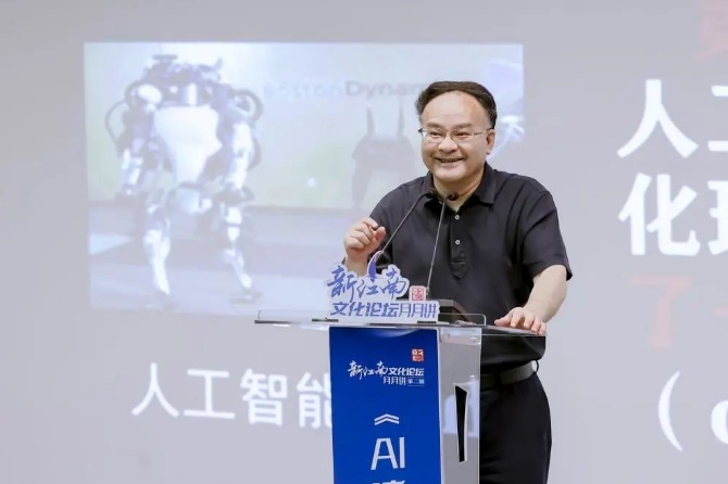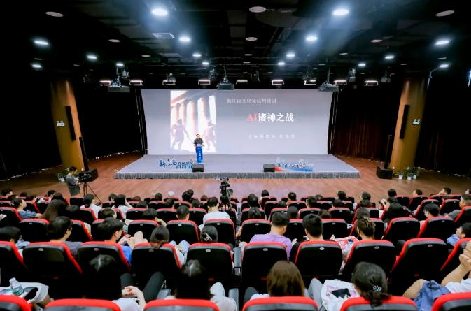 活动现场,倪闽景馆长以《AI诸神之战》为题,聚焦“数字化和信息化有什么区别?”“人类学习的本质是什么?”“ChatGPT是什么东西?”“技术与人类发展是什么关系?”“AIGC与未来社会”五个问题,阐述了人工智能的大发展简史,深刻揭示了人工智能对当下经济社会发展产生的深远影响。倪馆长指出,人工智能无法替代人类的智慧、情感和创造力。新技术总是以淘汰老的生产方式来淘汰旧劳动,但是新技术总是以创生新的人类需求来创造更多新劳动。