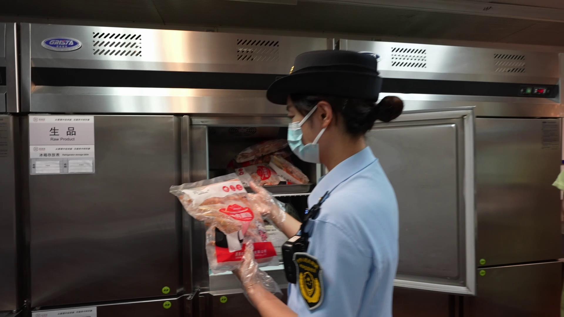 A:食材上,我们优先检查是否有生熟混放,然后我们查看具体食物是否有变质霉斑,保质期是否过期,标签是否齐全等等。