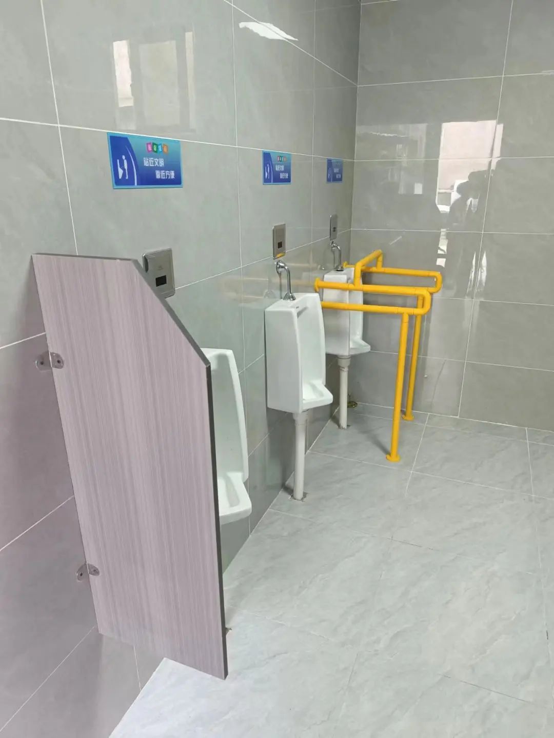 优化冲水设施,由原来的沟槽式定时冲水改为感应式冲水,用水量预计可下降90%,智能化设备更加节水环保,且明显减少了异味。