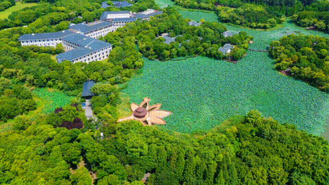 “荷花亭”是顾村公园标志性的观景廊亭,从空中俯瞰犹如一朵盛开的莲花,造型古朴、优美,与荷花淀相得益彰,倚在荷花亭的木栈道上,35000平方米荷花淀一览无遗,荷花以白色的剑舞等品种为主,清新雅丽,是游客夏日避暑、赏荷的绝佳场所。