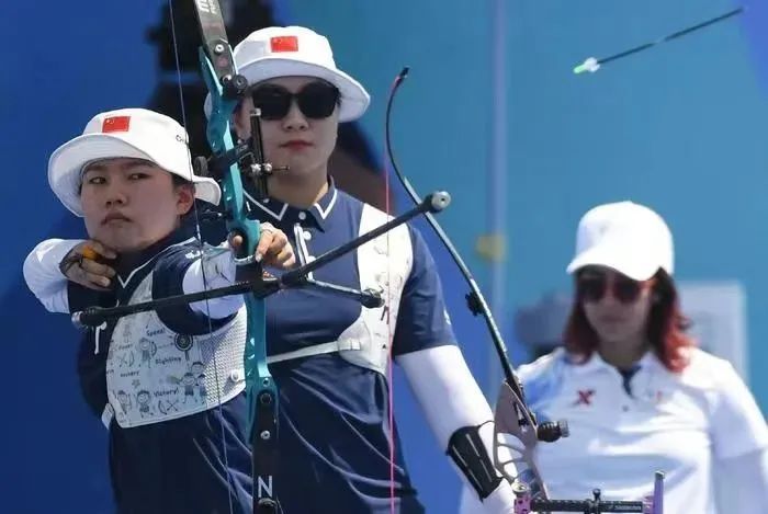 当天下午烈日当空,由周丹琰、王黎敏、李新鑫组成的中国女子反曲弓队与劲旅韩国队开启了金牌争夺战。