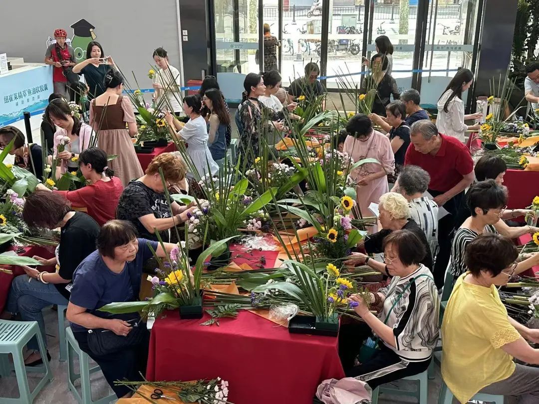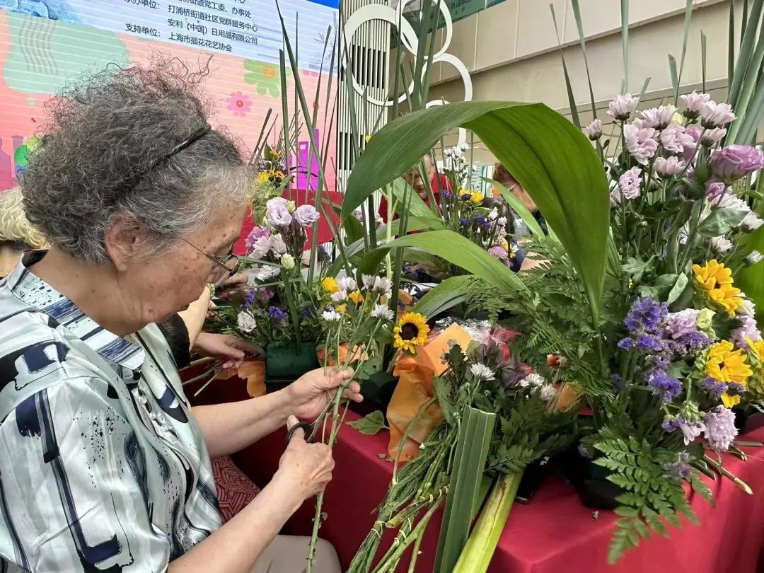 炎炎夏日,很多市民都选择在家“孵空调”避暑,一些社区单位更是开放了空闲的办公场地,为社区提供纳凉避暑的场地。7月31日,2023年上海市民海派插花花艺大赛(打浦桥街道赛区)举行,作为“浦汇融光”党建联盟的成员单位,在斜土路上的安利体验馆既能避暑,又有花香,还能学习技能,一举多得,让社区居民乐此不疲。