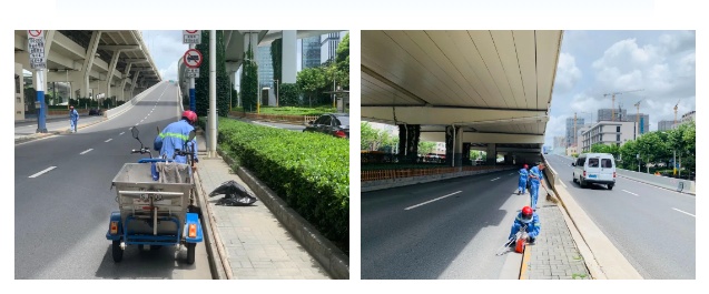 对南北高架广中西路匝道口、汶水路匝道口周边进行环境清扫。