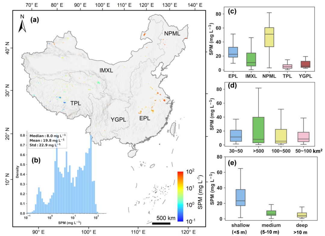 “悬浮物是评价水体水质的一个重要指标,同时也是水体营养盐及污染物的重要载体,其浓度直接影响到水体的水色、浑浊度、透明度等水体光学特性,进而还会影响到水体中生物的生长以及初级生产力。”曹志刚介绍,悬浮物(SPM)是湖泊光学活性物质之一,包含了水体内悬浮颗粒的总量(浮游藻类、泥沙等),影响了水体透明度和初级生产力,反映了湖泊-流域物质循环过程,是水文、水质及水环境关注的重要参数之一。受自然(地形地貌、湖泊形态)、气候(降雨、风速)和人类活动(建坝、挖沙、养殖、流域土地管理)的影响,湖泊悬浮物变化较快。
