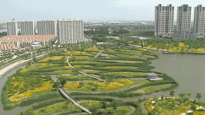 中心湖区与周围水域相通,园内白鹭飞舞,野鸭戏水,碧水涟漪,芦荡通幽,荷香清丽,金菊斗艳,生态环境优美,可谓四季皆美景,人在画中游。