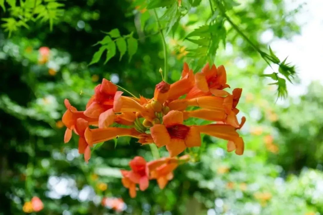 凌霄花最早见录于《诗经》。《小雅·苕之华》中有“苕之华,芸其黄矣”“苕之华,其叶青青”的诗句,“苕”指“苕陵”,即凌霄花。因为攀爬能力极强的特性,在很多文人笔下,凌霄花代表直冲云霄的凌云之志。作为我国四大传统藤花植物(凌霄、紫藤、忍冬、葡萄)之一,凌霄已经有三千年的栽培历史。
