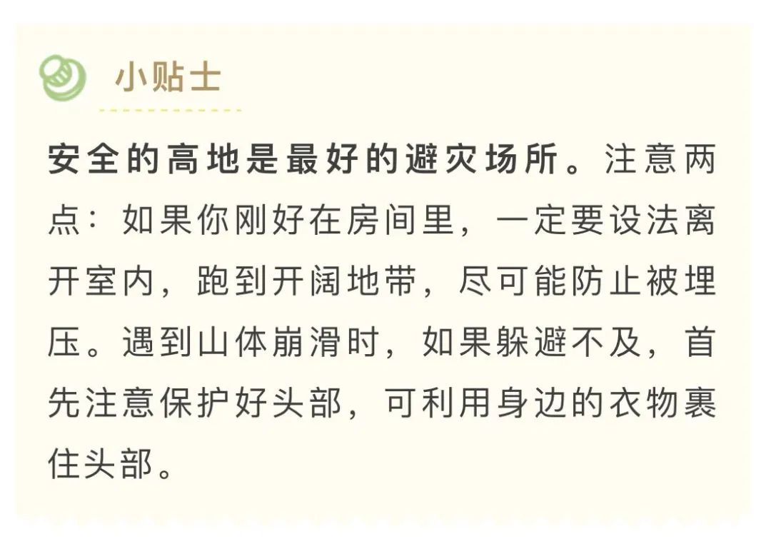 逢雨必涝地区的人,争取在特大暴雨来临前撤!同时,时刻准备好应对暴雨的急救包,里面放置手电筒、水、小收音机、干粮、急救药品、救援绳索,关键时刻用得着。