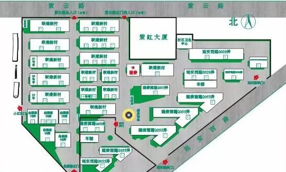 图中黄色为联建居民区健身苑点大致位置
