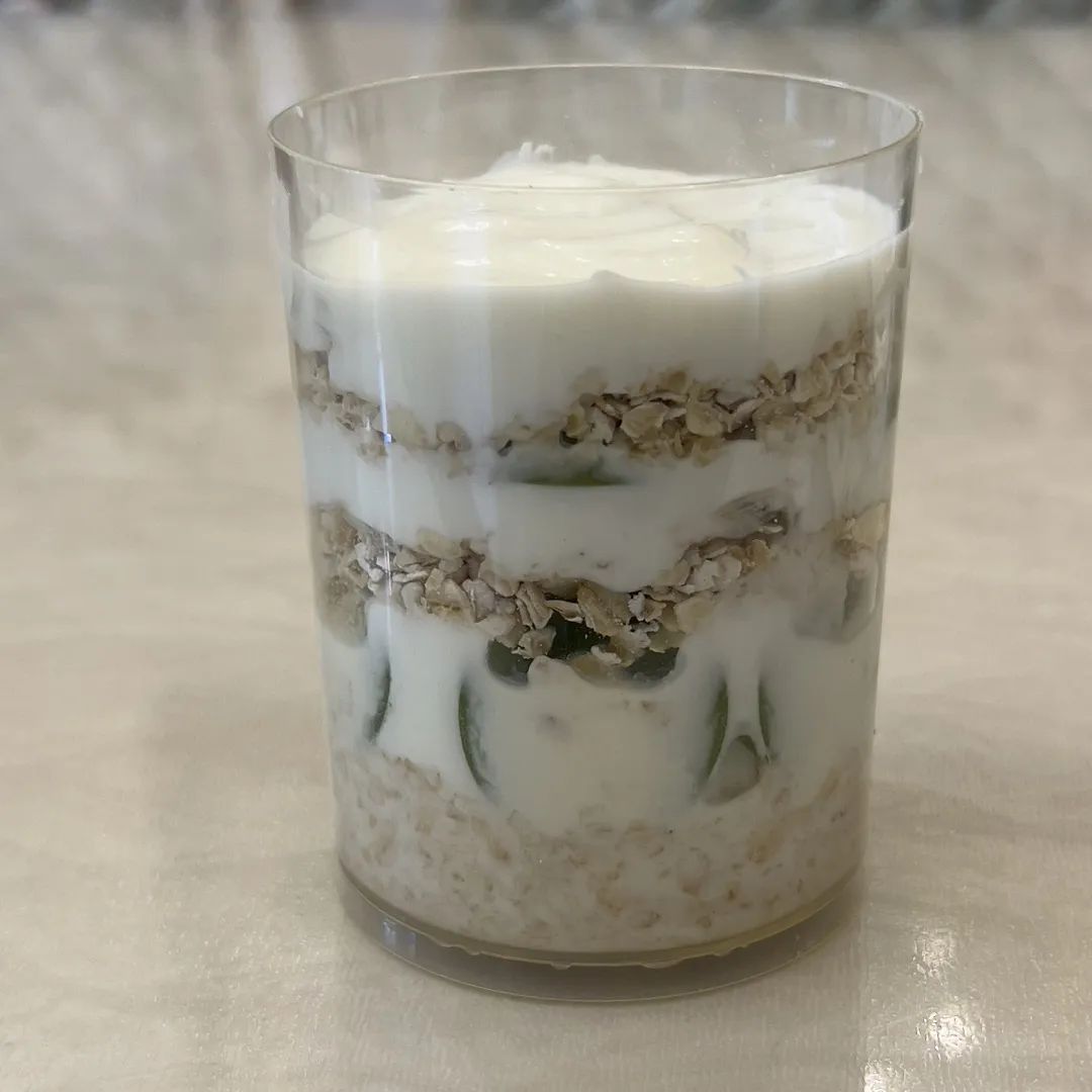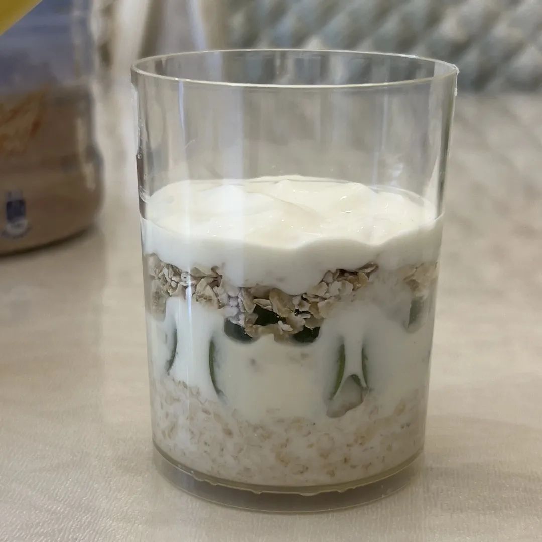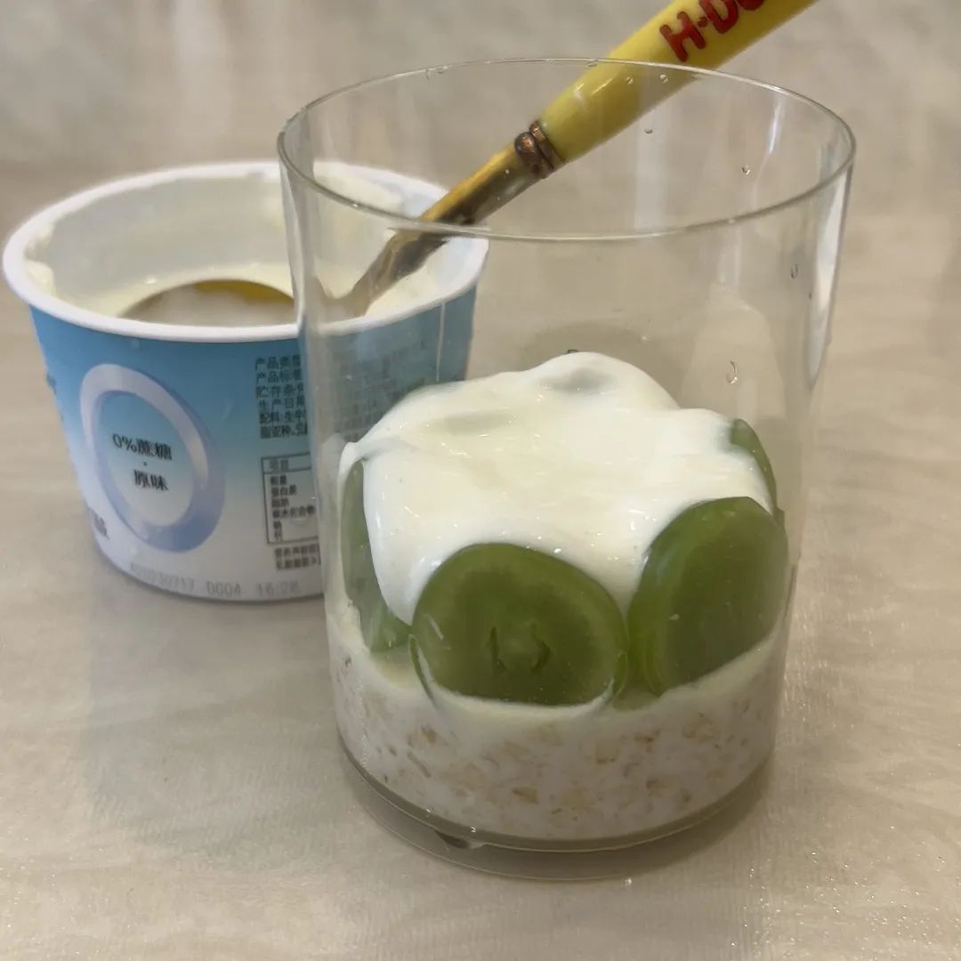 1.将少许燕麦片铺在杯底,加入牛奶浸泡,牛奶量刚好没过燕麦片即可。
