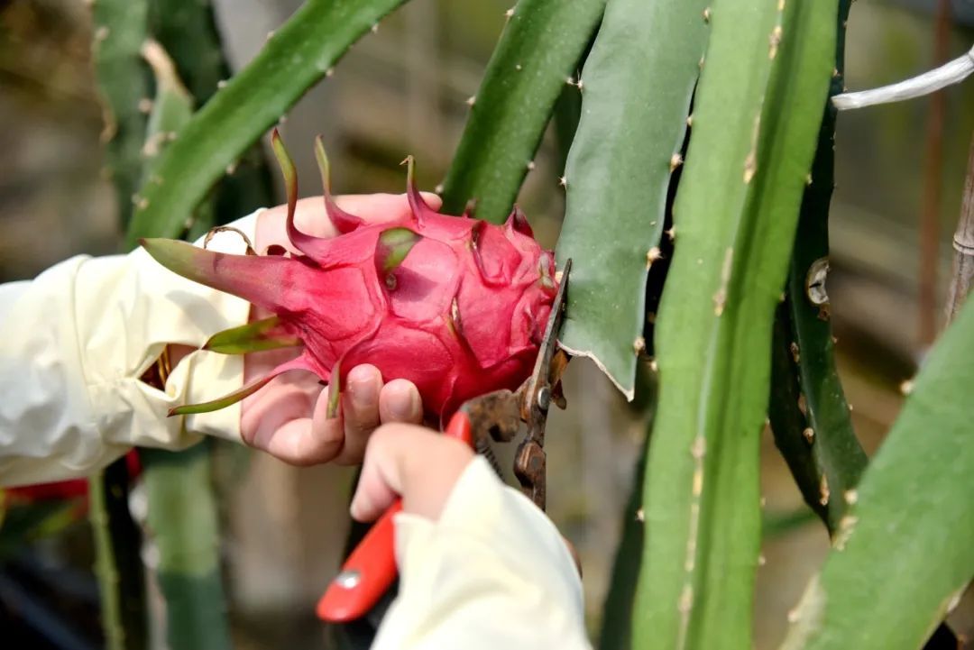 据悉,火龙果一年可结果4-5茬,目前宏泰园内有2亩火龙果可供游客采摘,采摘季将延续至10月上旬。