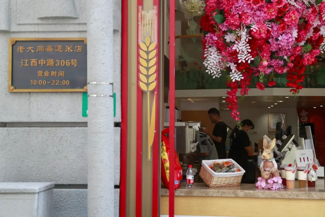 今年25岁的杨玮倩在老大同善道米店工作三年了,店铺位于江西中路,紧邻热闹的南京东路,相较于熙熙攘攘、人头攒动的南京东路,这里算是闹中取静,正是这份地理位置俱佳的安静和老大同老字号的招牌,总是会吸引不少游客前来打卡。
