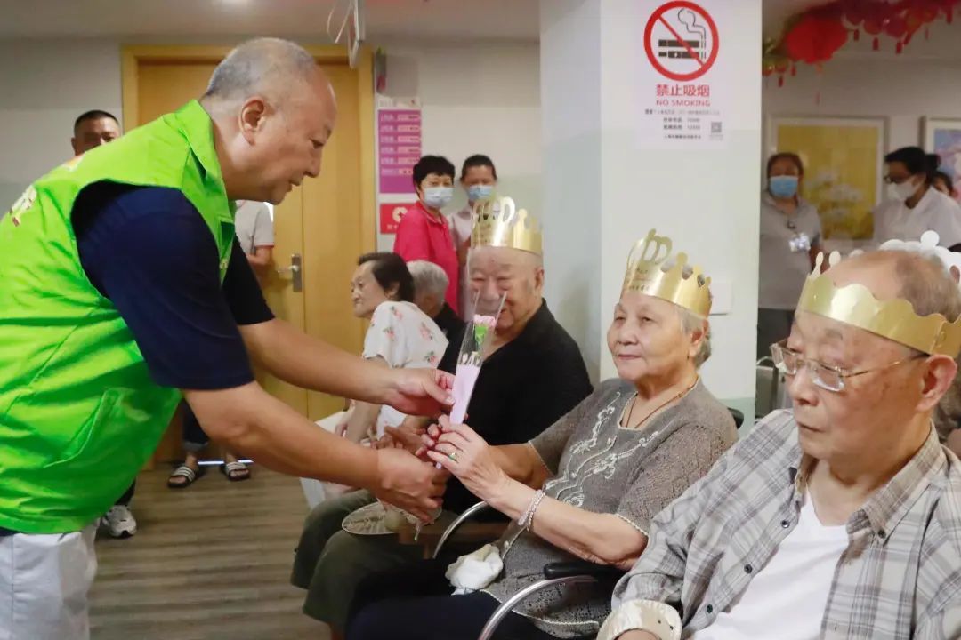 随着《生日快乐》歌曲的响起,在场全体志愿者和老人们一起合唱生日歌,为庆祝中国人民解放军建军96周年,同时也为8月生日的老人们庆生。“五里戎光”退役军人志愿服务队还把蛋糕和鲜花送到了寿星长者们床前,关心他们的身体状况,给他们带去生日的祝福。