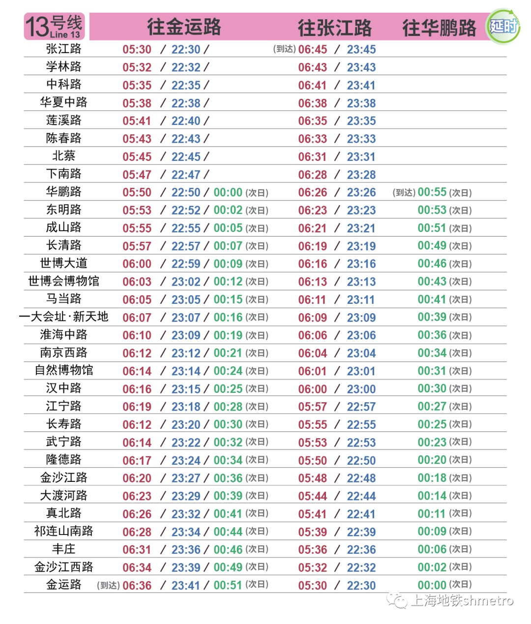 2号线启用新运行图后,徐泾东站发出的往浦东国际机场站末班车时间延后30分钟,可提升2号线夜间服务水平,更重要的是整体增加了2号线东延伸段夜间服务时长。调整后,广兰路站往浦东国际机场站方向末班车时间由目前的22:30延后至23:00,到达浦东国际机场站的末班车时间由目前的23:01分延后至23:31,可方便前往东延伸区段的夜归乘客,以及夜间前往浦东国际机场站的航空旅客。