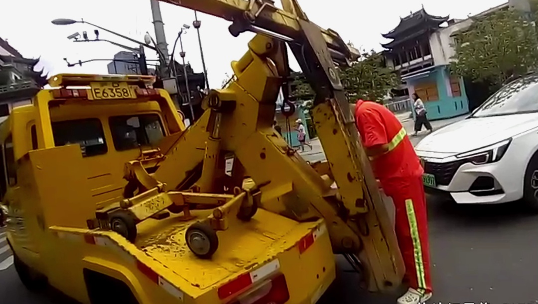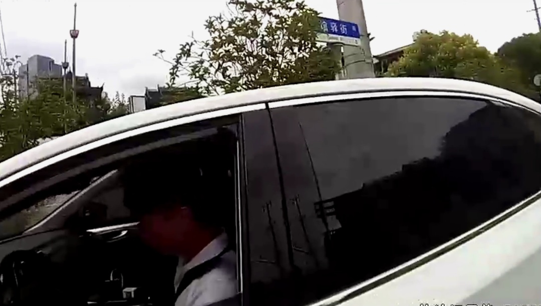 记录仪显示,当时这辆白色轿车正在豫园方浜中路附近违反禁止标线停车,被交警拦下。随即交警让司机张某出示驾驶证和行驶证,张某支支吾吾无法拿出证件,于是民警让他熄火下车接受询问。