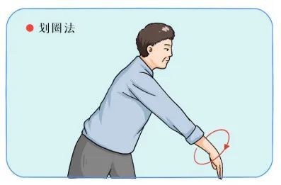 身体前倾,患臂自然下垂,顺时针方向画圈20-30次,再弯腰逆时针方向画圈如前数。注意画圈幅度要逐渐增大,以不劳累为度。