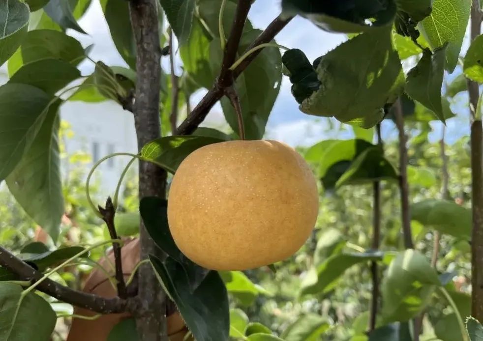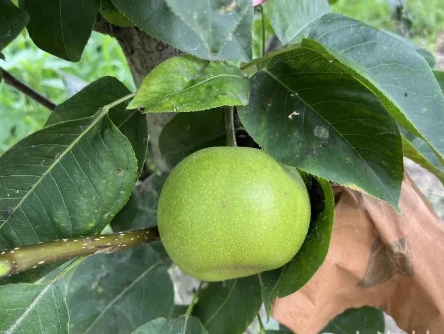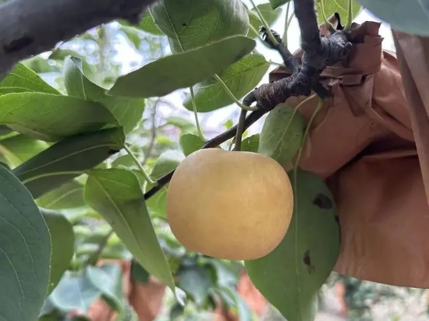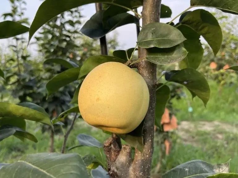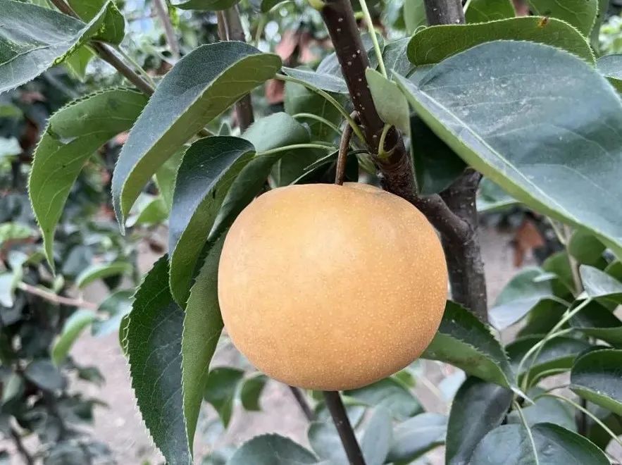 ‘爽蜜’是以‘奥萨二十世纪’为母本,‘幸水’为父本,杂交选育而得的早熟品种。果实大,果形圆正,平均单果重可达420.6g,平均可溶性固形物含量13.4%,属于高糖系列,石细胞少、汁液多,清香味浓。