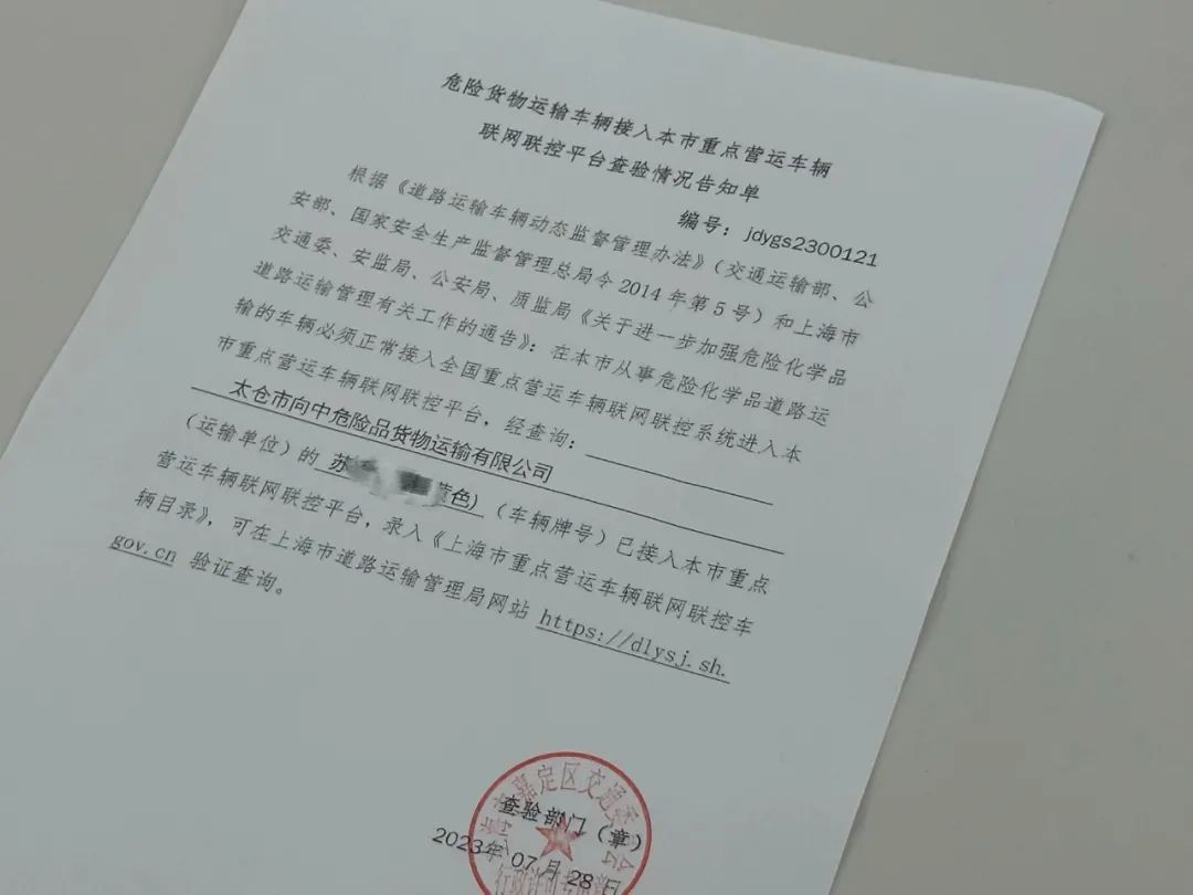 “外省市危险货物运输车辆进出上海,是需要将车辆接入上海市联网联控平台的。原先办理这项业务,我们需要跑到上海市办理,时间和空间成本较高。此次远程虚拟窗口的开设,让我们就近就可以办理,解决了燃眉之急。”企业代表表示,很快,第二天就收到嘉定区行政服务中心寄出的《危险货物运输车辆接入本市重点营运车辆联网联控平台查验情况告知单》,车辆凭借此告知单可顺利进出上海。