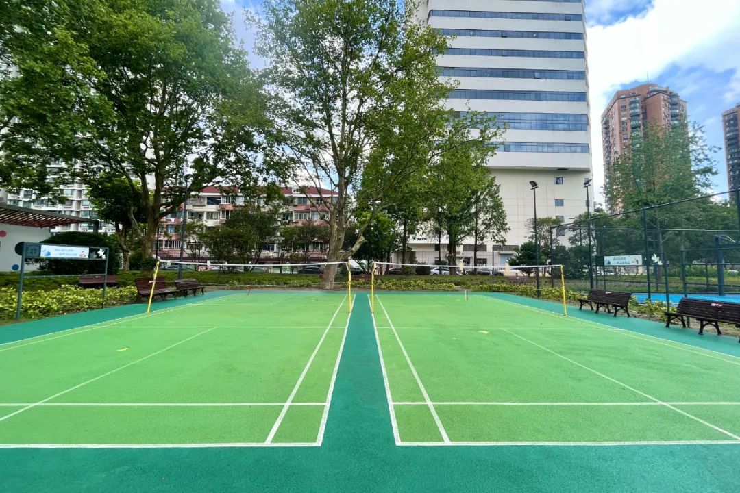 毗邻篮球场,有两个标准羽毛球场,免费开放,先到先得。