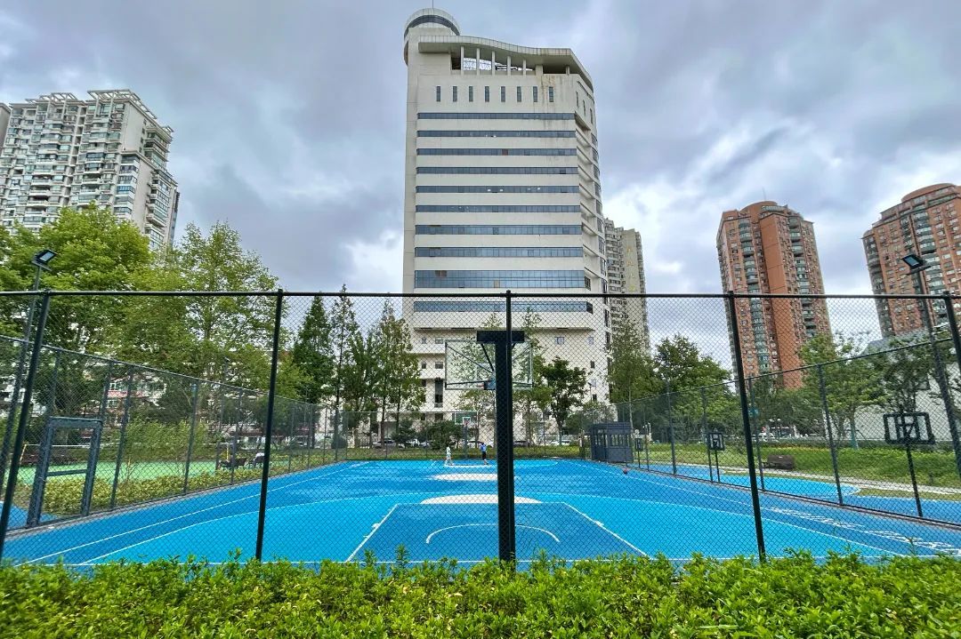 在篮球场一侧,还有专为青少年儿童设置的非标篮球架,免费开放。
