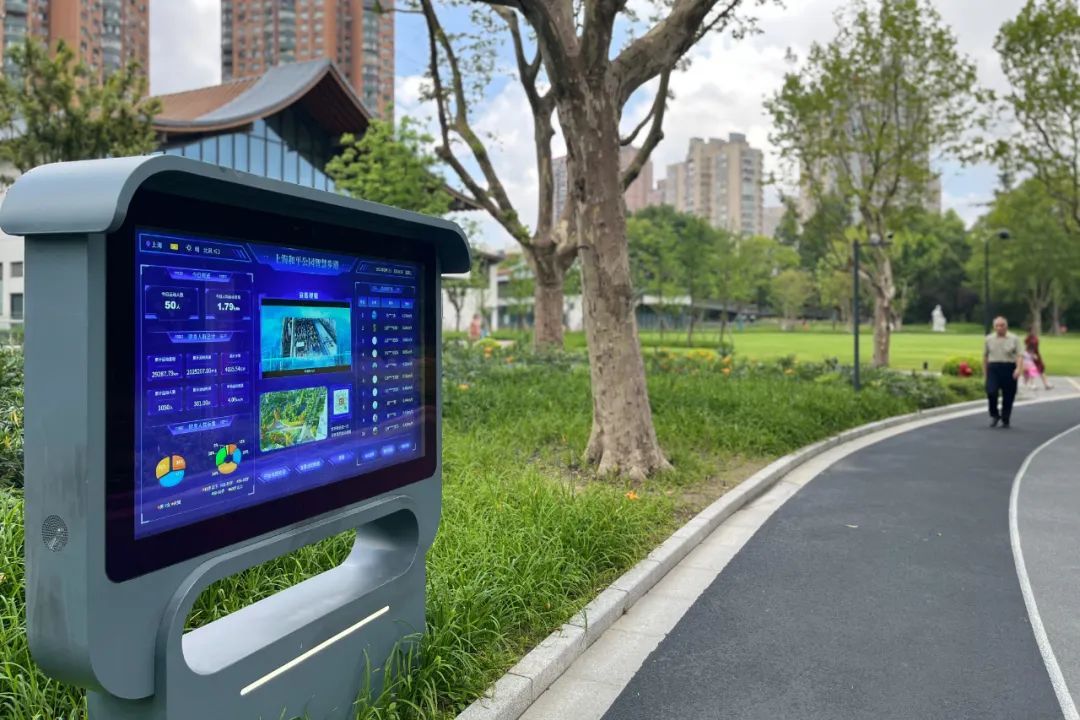 沿主园路设置了1.5公里的智能跑道,市民通过“上海和平公园”小程序,或公园综合服务中心、公园2号出入口的互动大屏进行注册,查看运动数据和排行榜。